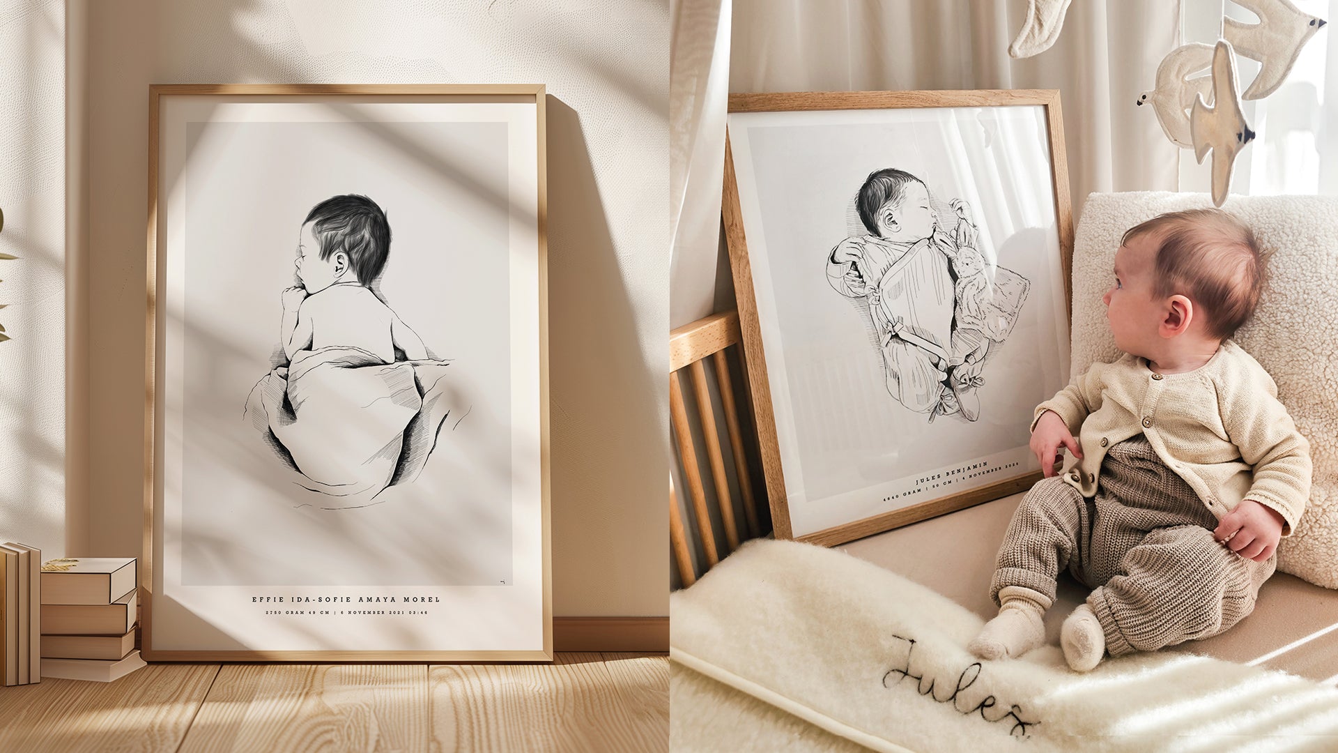 Commission a custom hand-drawn portrait of your baby or loved one. Each artwork is unique, capturing your most treasured moments
