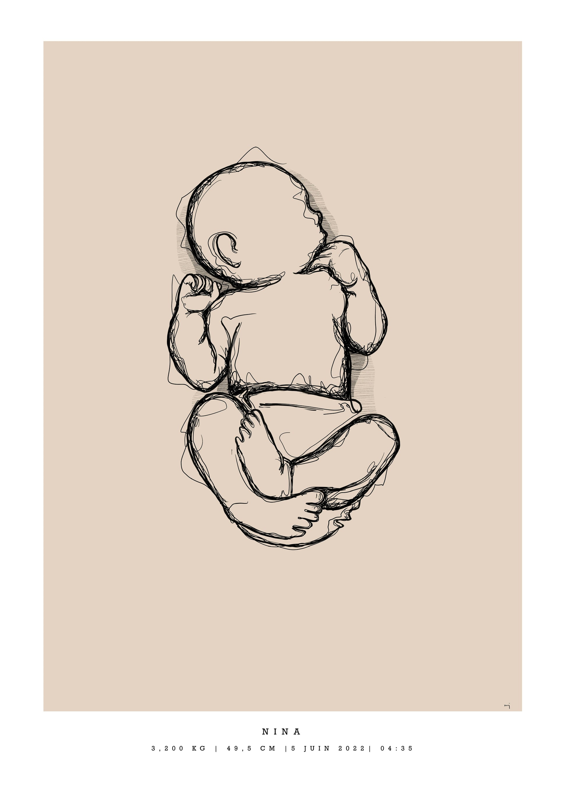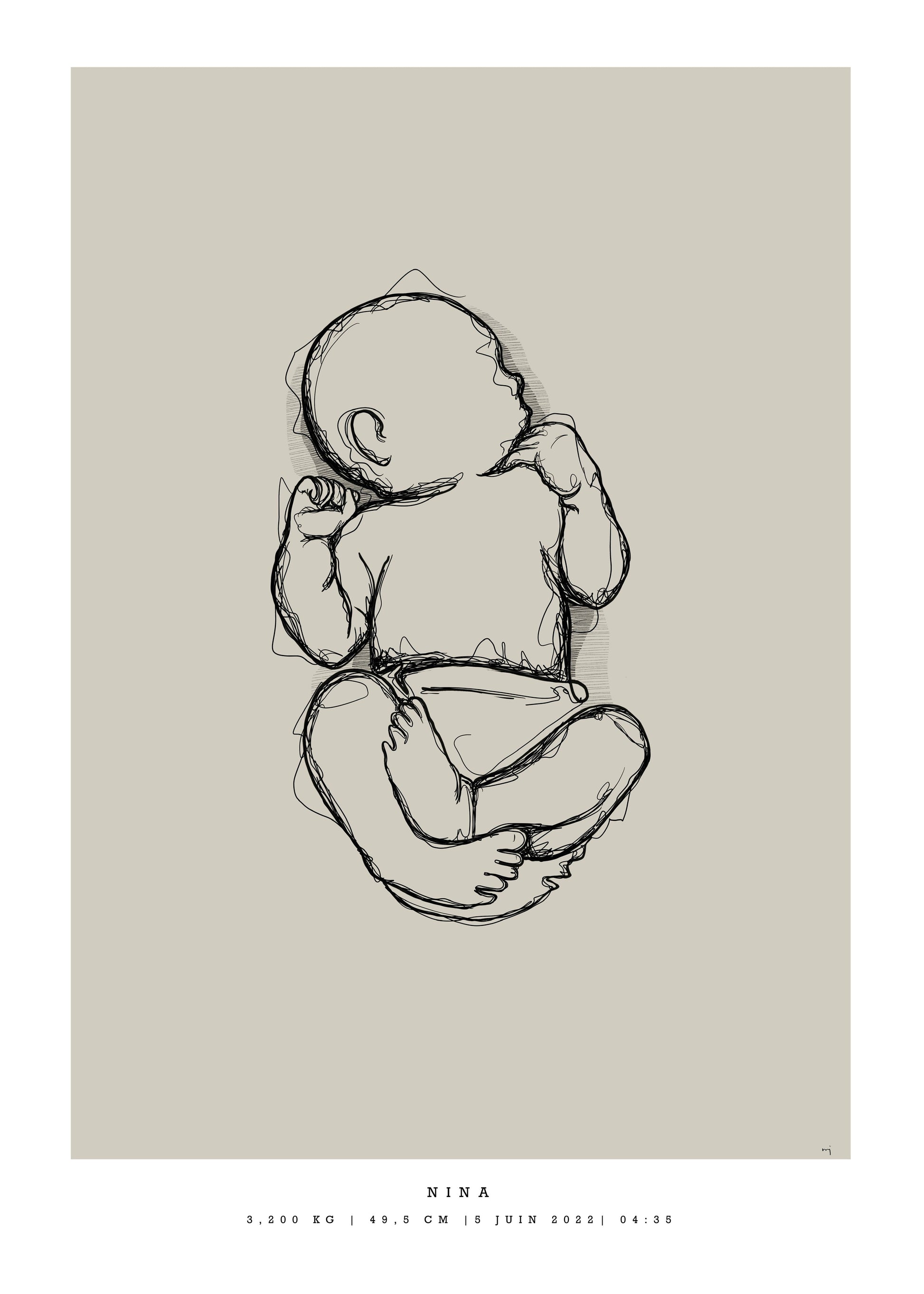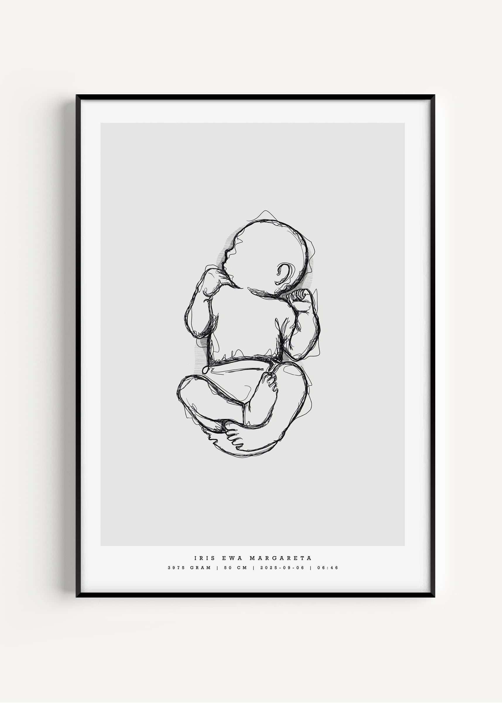 Remember how small your baby was at birth. With this generic birth poster you get your baby's lenght in a natural baby pose, in scale 1:1.