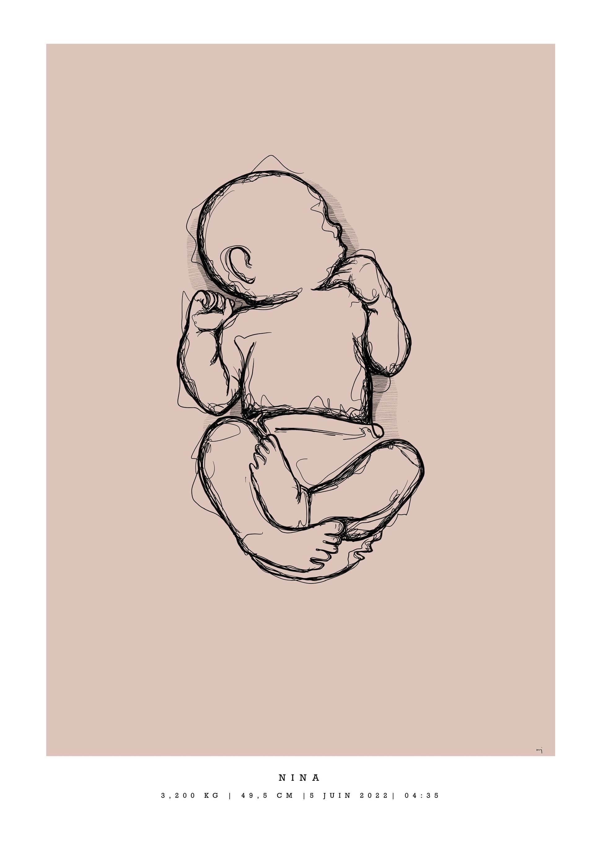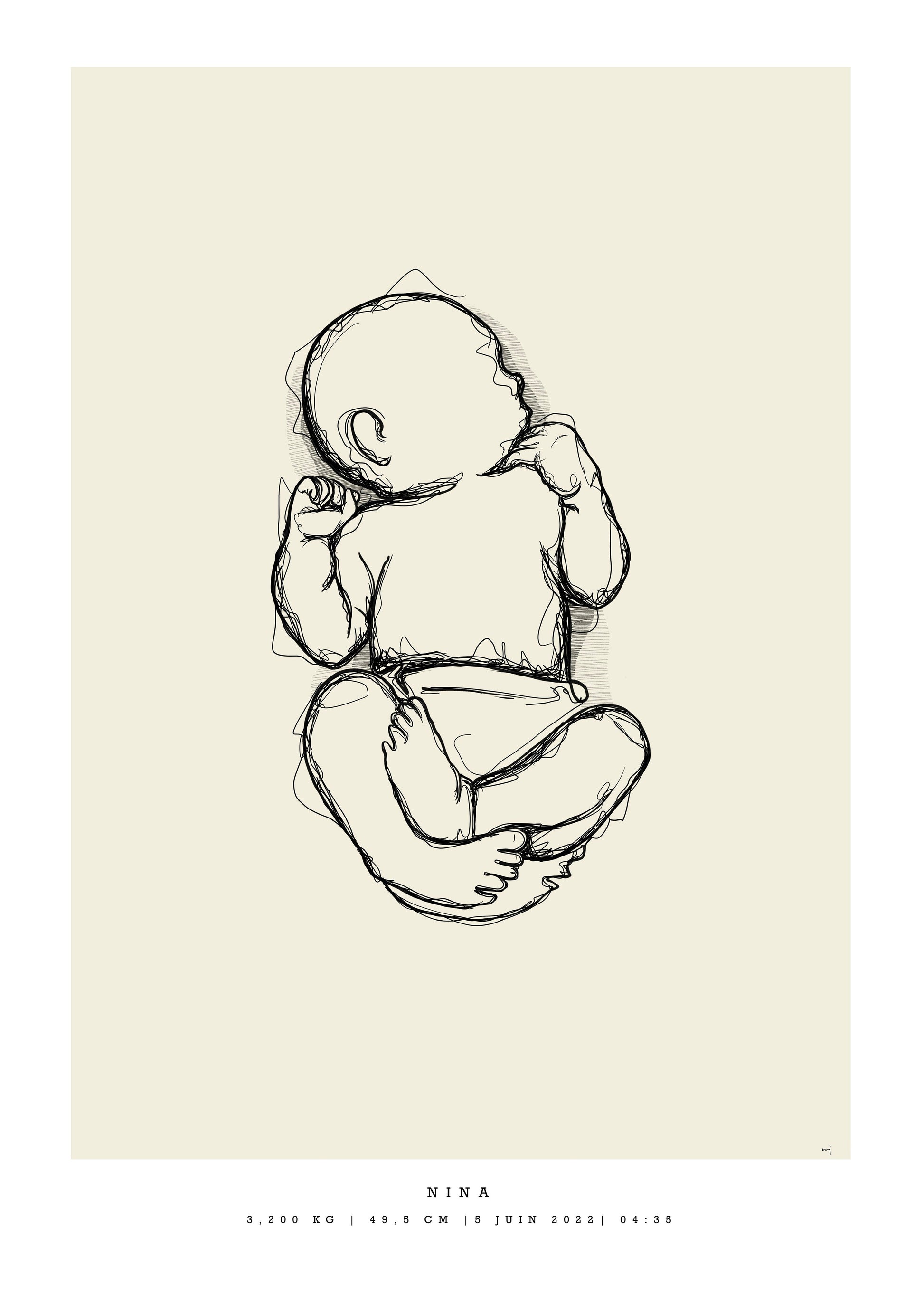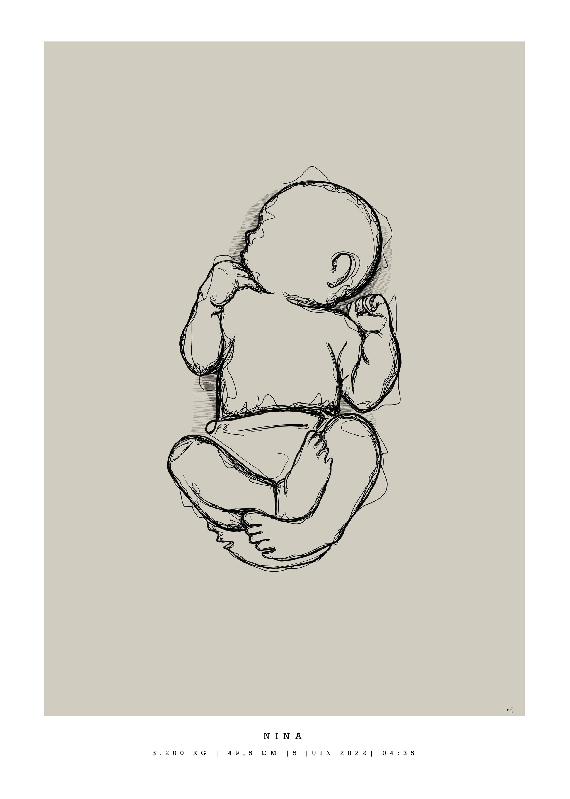 Remember how small your baby was at birth. With this generic birth poster you get your baby's lenght in a natural baby pose, in scale 1:1.