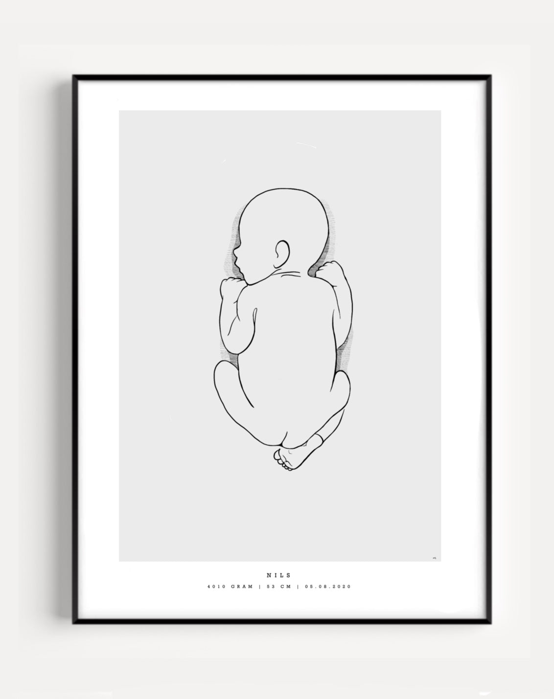 Remember how small your baby was at birth. With this generic birth poster you get your baby's lenght in a natural baby pose, in scale 1:1.