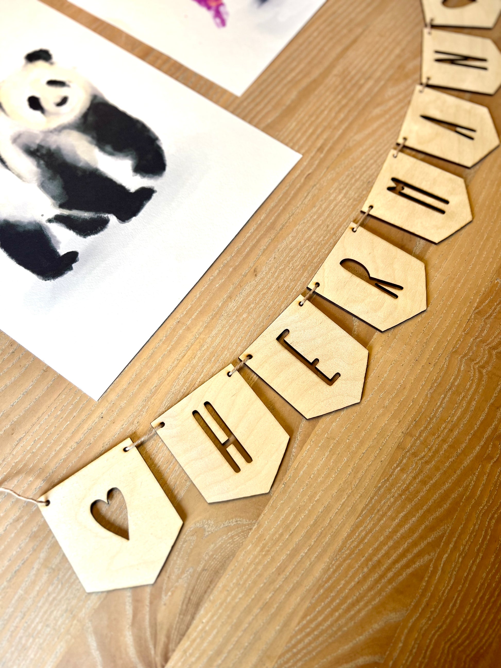 Beautiful wooden Name Garland. Crafted from high-quality wood. Perfect for nurseries, children's rooms, or as a thoughtful gift, this charming decoration. Bring a warm and personalized feel to any space with this elegant and versatile wooden balloon.